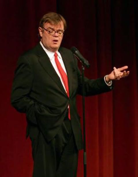Garrison Keillor, star of the "Prairie Home Companion" radio show, performed on Valentine's Day at Laxson Auditorium, to enthusiastic applause.